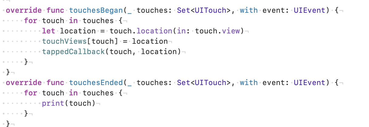 override func touchesBegan(_ touches: Set<UITouch>, with event: UIEvent) {