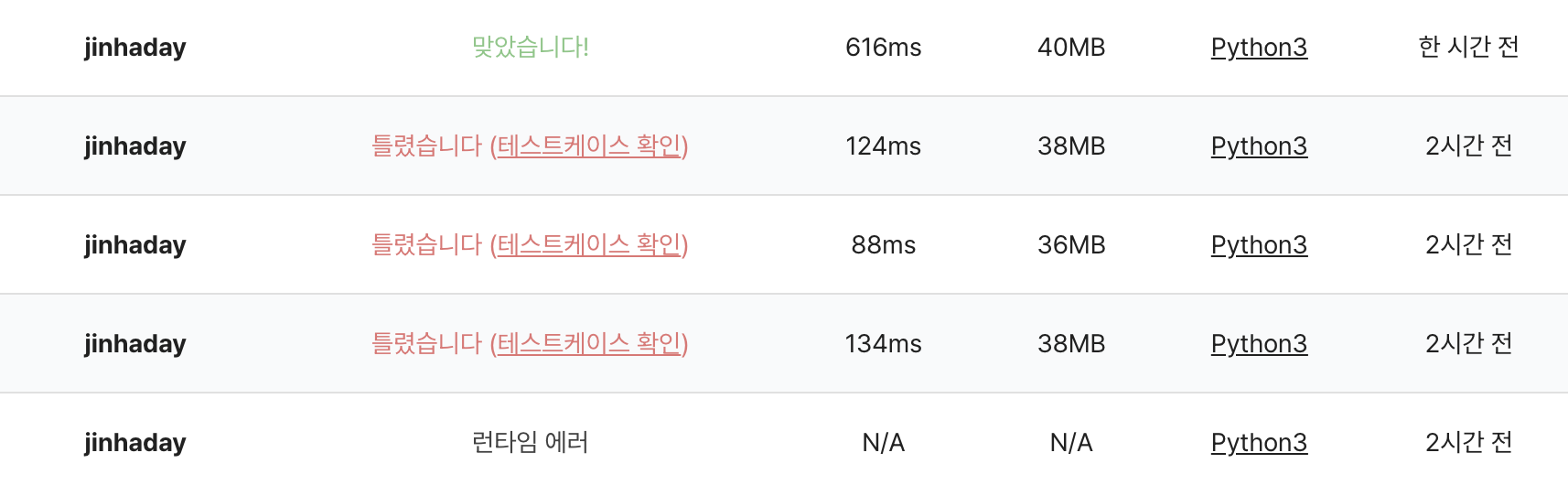 1. 실패 -> n이 x축, h가 y축인데 둘을 헷갈려서 index가 터졌습니다.