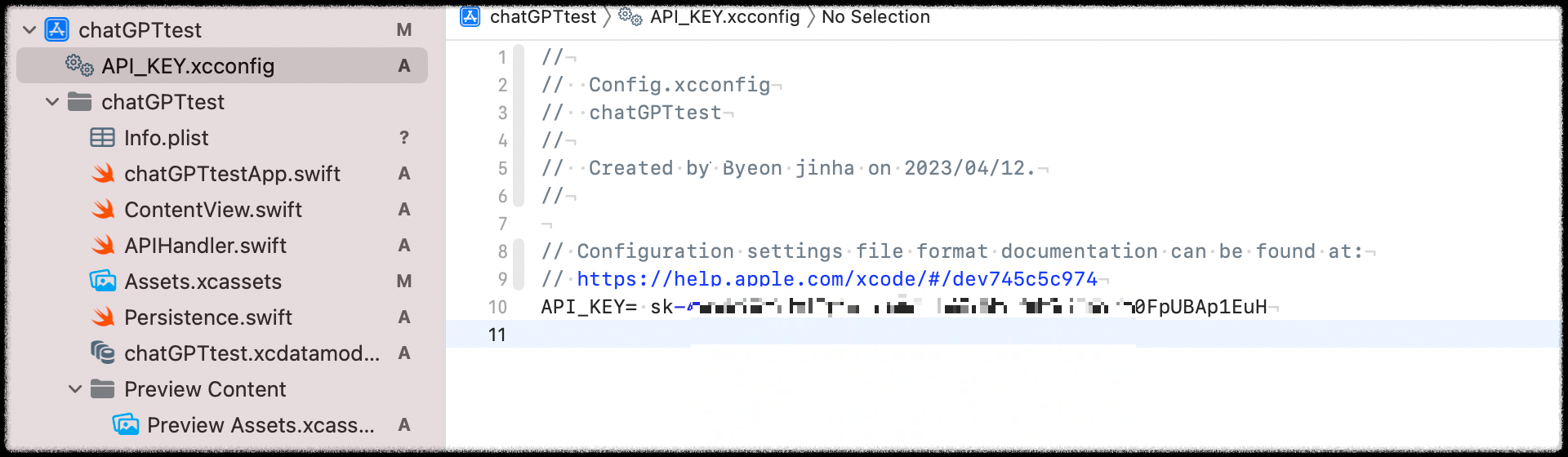 그리고 API KEY를 관리할 Configuration Settings File을 만드신 다음
