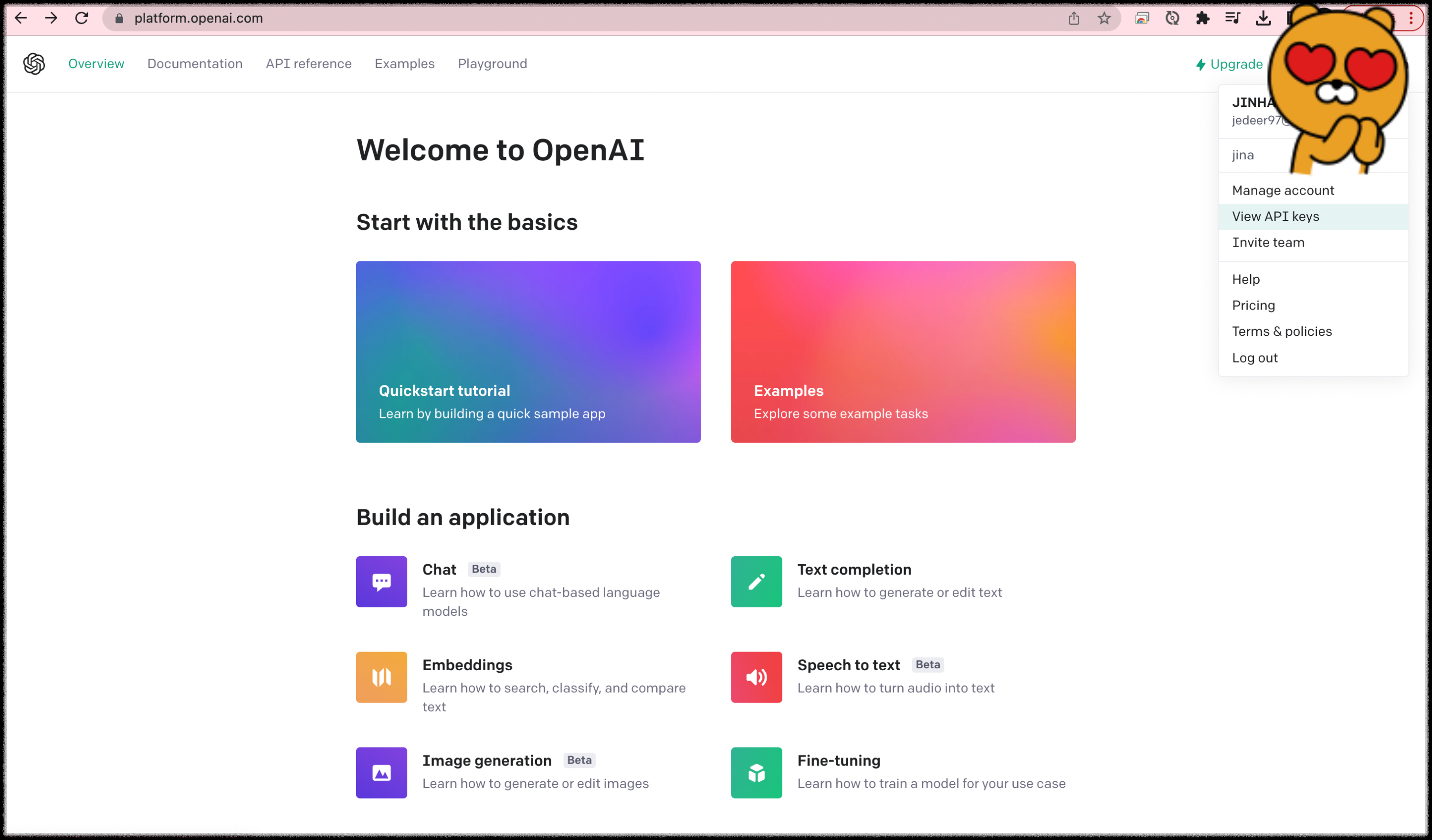 https://platform.openai.com/ 여기서 로그인하고